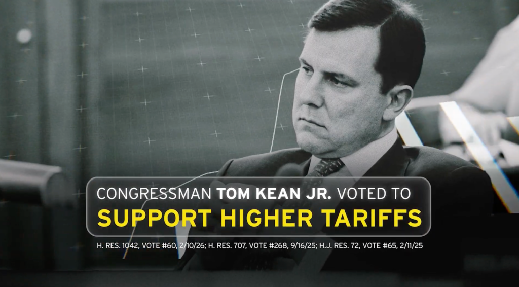 The ad highlights that Congressman Tom Kean Jr. (NJ-07) voted to support the higher tariffs that are raising costs for Michele and millions of families and businesses across the country.