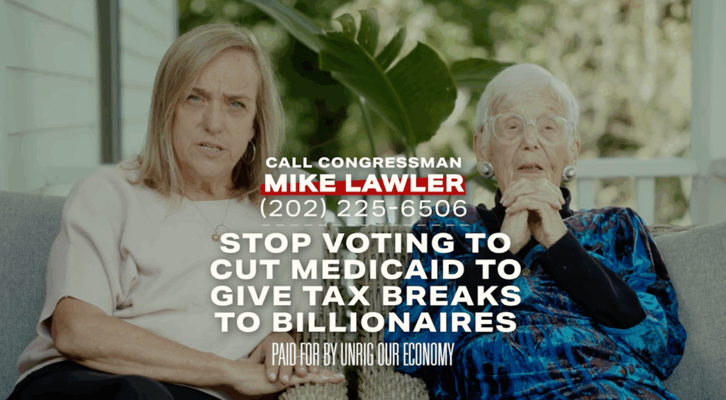 The New York ad features mother and daughter Tina and Dee, Westchester residents who rely on Medicaid to provide 102-year-old Dee with the care she needs. They call out Congressman Lawler for breaking his promise not to cut Medicaid and voting for the largest cuts to Medicaid in history, hurting New Yorkers like Tina and Dee.