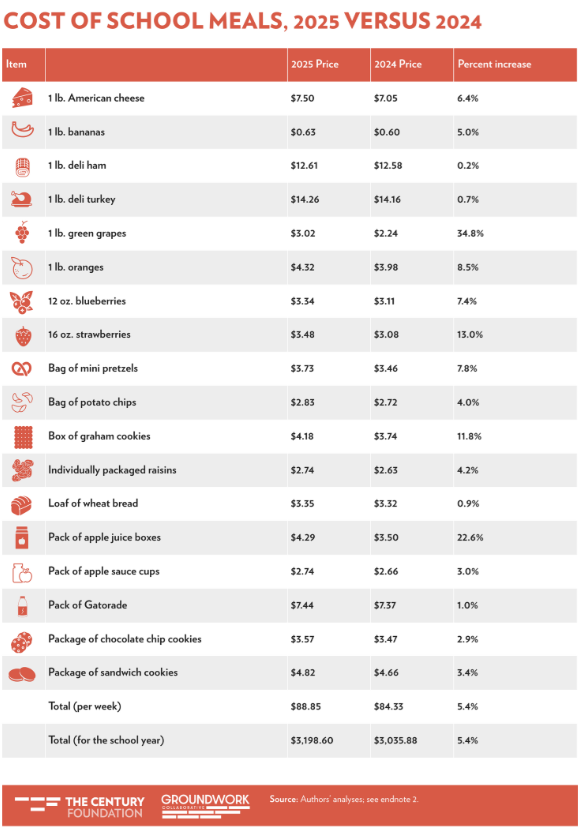 Further, families will pay nearly $163 more this year for school lunch staples, a 5.4 percent increase over last year. The price of brown-bag essentials such as juice boxes, grapes, and strawberries are up by an average of 22 percent. This is compounded by the effects of Trump’s tariffs which are hiking the prices of clothing and shoes by as much as 40 percent, electronics by 30 percent, and college textbooks by 10 percent.